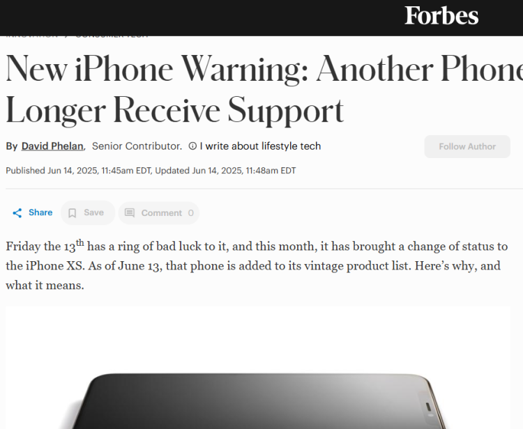 据悉,苹果公司按照严格的时间表将产品添加到复古和过时产品列表中。当产品停售超过5年但不足7年时,即被视为复古产品。iPhone XS 于2018年9月上市,如今刚好过了五年的期限,因此被列入复古产品列表。